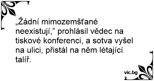 „Žádní mimozemšťané neexistují,” prohlásil vědec na tiskové konferenci, a sotva vyšel na ulici, přistál na něm létající talíř.