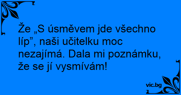 Že „S úsměvem jde všechno líp”, naši učitelku moc nezajímá. Dala mi poznámku, že se jí vysmívám!