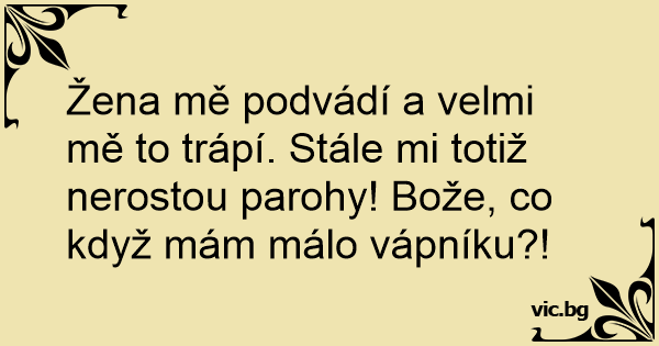 Žena mě podvádí a velmi mě to trápí. Stále mi totiž nerostou parohy! Bože, co když mám málo vápníku?!