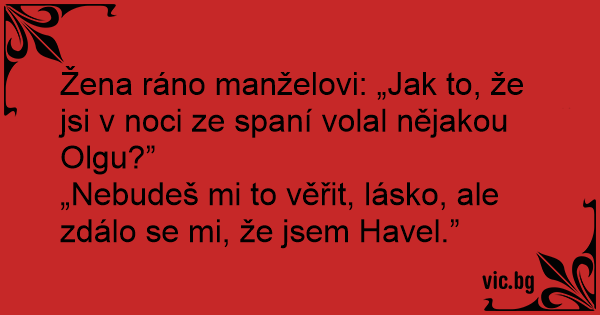 Žena ráno manželovi: „Jak to, že jsi v noci ze spaní volal nějakou Olgu?”