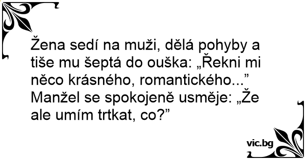 Žena sedí na muži, dělá pohyby a tiše mu šeptá do ouška: „Řekni mi něco krásného, romantického...”