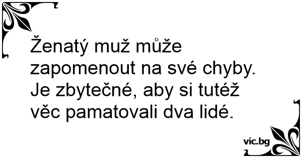 Ženatý muž může zapomenout na své chyby. Je zbytečné, aby si tutéž věc pamatovali dva lidé.
