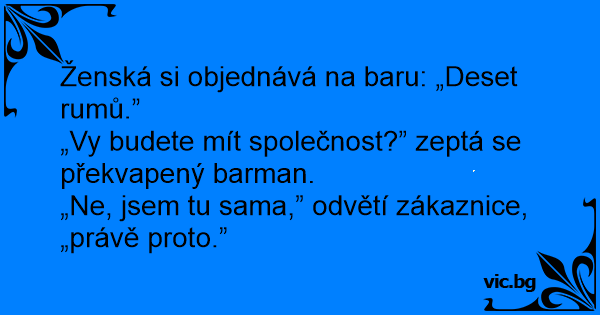Ženská si objednává na baru: „Deset rumů.”