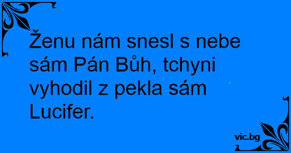 Ženu nám snesl s nebe sám Pán Bůh, tchyni vyhodil z pekla sám Lucifer.