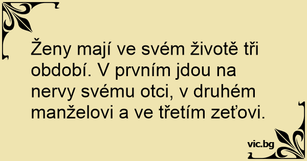 Ženy mají ve svém životě tři období. V prvním jdou na nervy svému otci, v druhém manželovi a ve třetím zeťovi.
