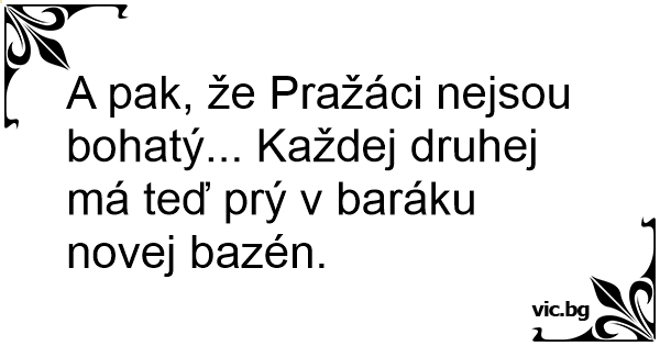 A pak, že Pražáci nejsou bohatý... Každej druhej má teď prý v baráku novej bazén.
