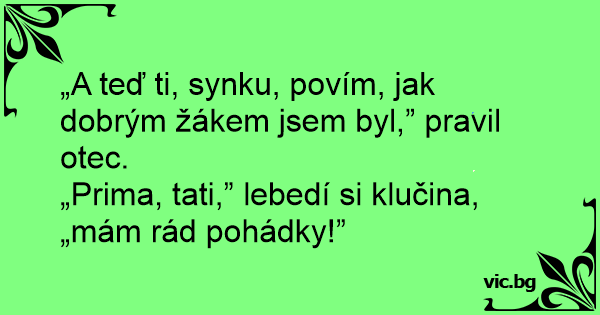 „A teď ti, synku, povím, jak dobrým žákem jsem byl,” pravil otec.