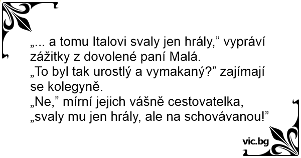 „Ne,” mírní jejich vášně cestovatelka, „svaly mu jen hrály, ale na schovávanou!”