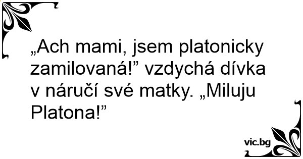 „Ach mami, jsem platonicky zamilovaná!” vzdychá dívka v náručí své matky. „Miluju Platona!”