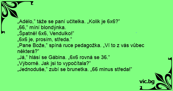 „Adélo,” táže se paní učitelka. „Kolik je 6x6?”