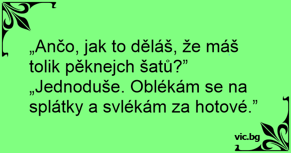 „Ančo, jak to děláš, že máš tolik pěknejch šatů?”