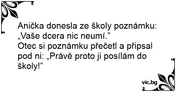 Otec si poznámku přečetl a připsal pod ni: „Právě proto ji posílám do školy!”