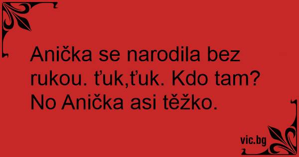 Anička se narodila bez rukou. ťuk,ťuk. Kdo tam? No Anička asi těžko.