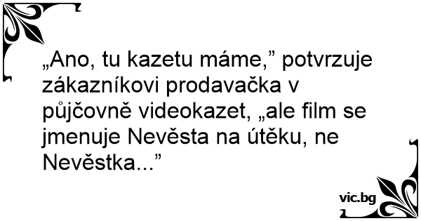 „Ano, tu kazetu máme,” potvrzuje zákazníkovi prodavačka v půjčovně videokazet, „ale film se jmenuje Nevěsta na útěku, ne Nevěstka...”