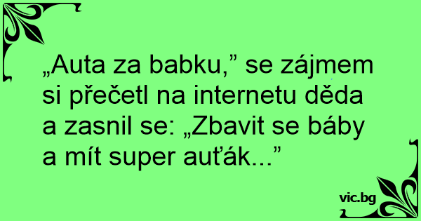 „Auta za babku,” se zájmem si přečetl na internetu děda a zasnil se: „Zbavit se báby a mít super auťák...”