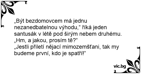 „Být bezdomovcem má jednu nezanedbatelnou výhodu,” říká jeden santusák v létě pod širým nebem druhému.