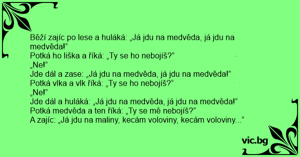 Běží zajíc po lese a huláká: „Já jdu na medvěda, já jdu na medvěda!”
