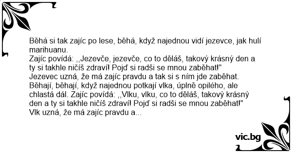 Běhá si tak zajíc po lese, běhá, když najednou vidí jezevce, jak hulí marihuanu.