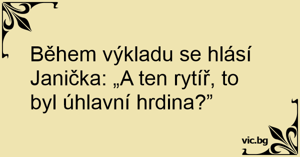 Během výkladu se hlásí Janička: „A ten rytíř, to byl úhlavní hrdina?”