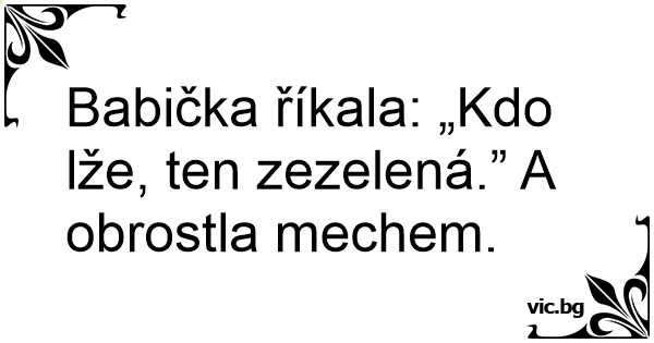Babička říkala: „Kdo lže, ten zezelená.” A obrostla mechem.