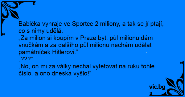 „No, on mi za války nechal vytetovat na ruku tohle číslo, a ono dneska vyšlo!”