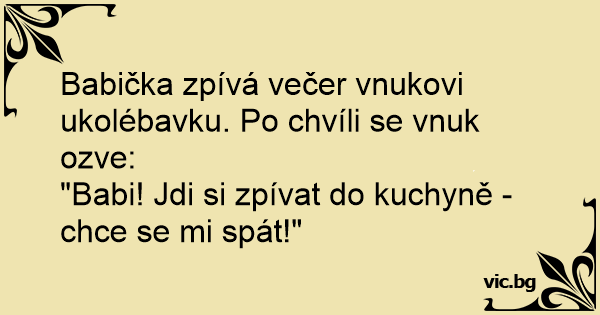 Babička zpívá večer vnukovi ukolébavku. Po chvíli se vnuk ozve: