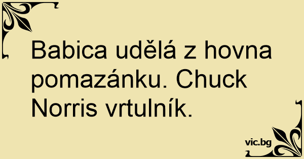 Babica udělá z hovna pomazánku. Chuck Norris vrtulník.