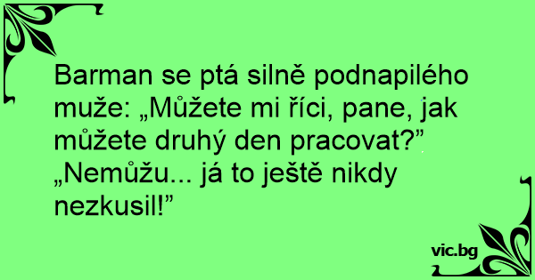 Barman se ptá silně podnapilého muže: „Můžete mi říci, pane, jak můžete druhý den pracovat?”