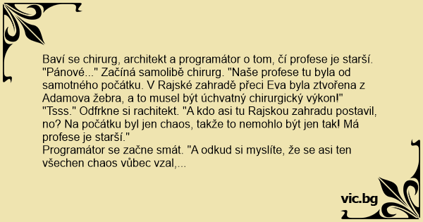 Baví se chirurg, architekt a programátor o tom, čí profese je starší.