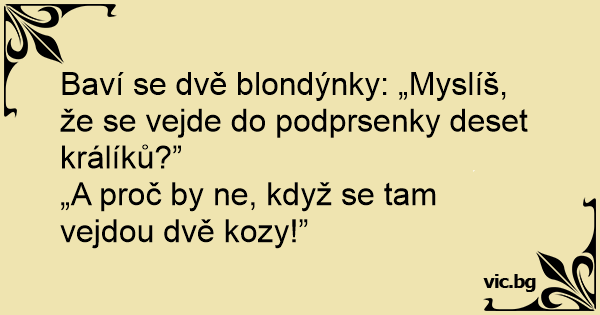 Baví se dvě blondýnky: „Myslíš, že se vejde do podprsenky deset králíků?”