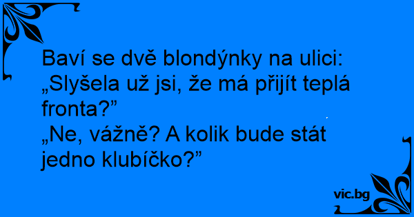 Baví se dvě blondýnky na ulici: „Slyšela už jsi, že má přijít teplá fronta?”