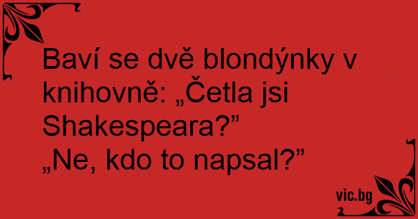 Baví se dvě blondýnky v knihovně: „Četla jsi Shakespeara?”