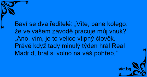 Baví se dva ředitelé: „Víte, pane kolego, že ve vašem závodě pracuje můj vnuk?”