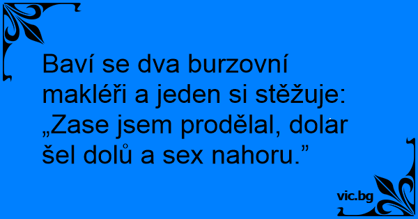 Baví se dva burzovní makléři a jeden si stěžuje: „Zase jsem prodělal, dolar šel dolů a sеx nahoru.”