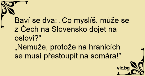 Baví se dva: „Co myslíš, může se z Čech na Slovensko dojet na oslovi?”