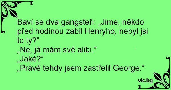 Baví se dva gangsteři: „Jime, někdo před hodinou zabil Henryho, nebyl jsi to ty?”
