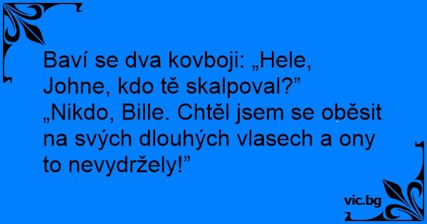 Baví se dva kovboji: „Hele, Johne, kdo tě skalpoval?”