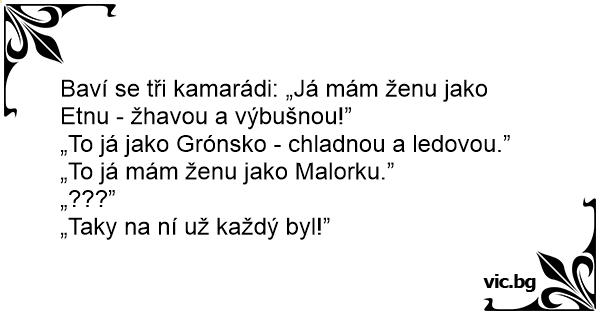 Baví se tři kamarádi: „Já mám ženu jako Etnu - žhavou a výbušnou!”
