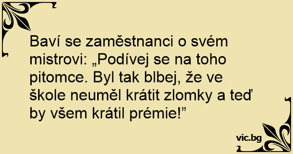 Baví se zaměstnanci o svém mistrovi: „Podívej se na toho pitomce. Byl tak blbej, že ve škole neuměl krátit zlomky a teď by všem krátil prémie!”