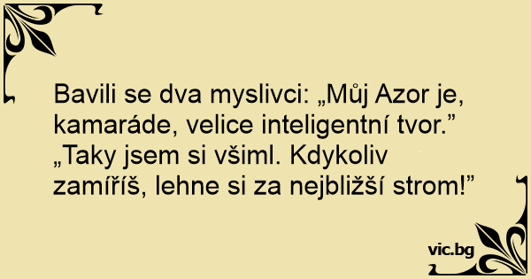 Bavili se dva myslivci: „Můj Azor je, kamaráde, velice inteligentní tvor.”
