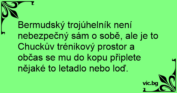 Bermudský trojúhelník není nebezpečný sám o sobě, ale je to Chuckův trénikový prostor a občas se mu do kopu připlete nějaké to letadlo nebo loď.