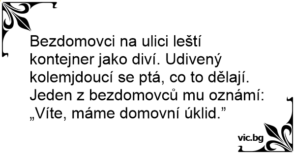 Jeden z bezdomovců mu oznámí: „Víte, máme domovní úklid.”