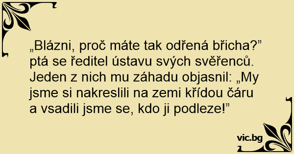 „Blázni, proč máte tak odřená břicha?” ptá se ředitel ústavu svých svěřenců.