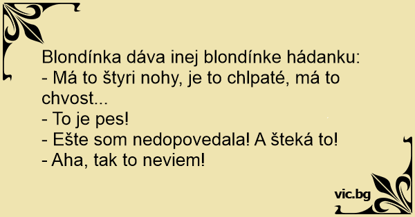 - Má to štyri nohy, je to chlpaté, má to chvost...