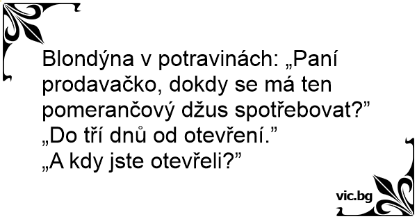 Blondýna v potravinách: „Paní prodavačko, dokdy se má ten pomerančový džus spotřebovat?”