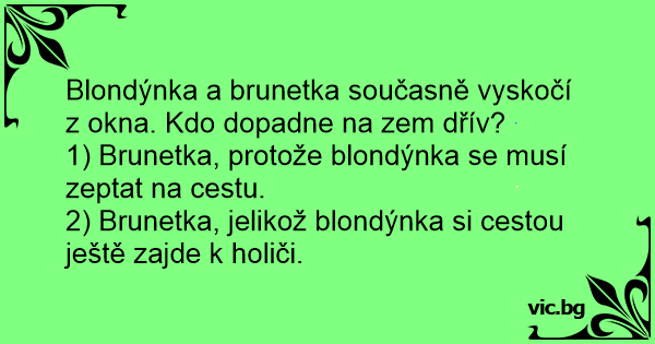 1) Brunetka, protože blondýnka se musí zeptat na cestu.