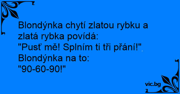 Blondýnka chytí zlatou rybku a zlatá rybka povídá: