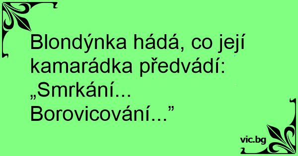 Blondýnka hádá, co její kamarádka předvádí: „Smrkání... Borovicování...”