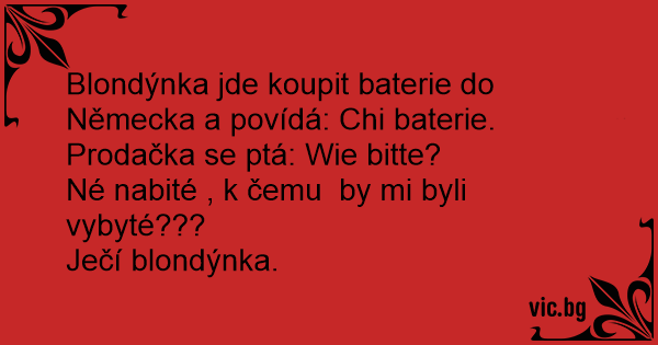 Blondýnka jde koupit baterie do Německa a povídá: Chi baterie.