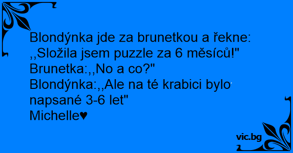 Blondýnka jde za brunetkou a řekne: ,,Složila jsem puzzle za 6 měsíců!"